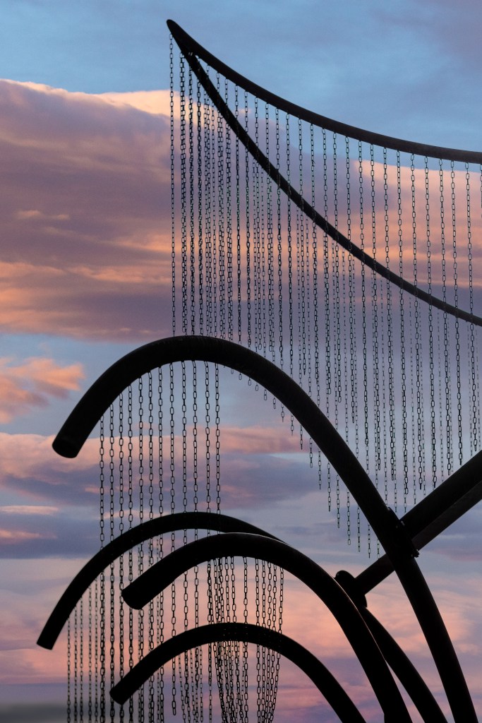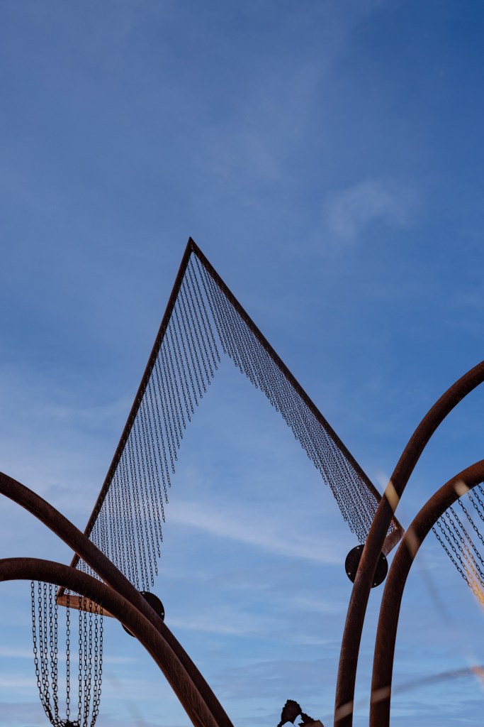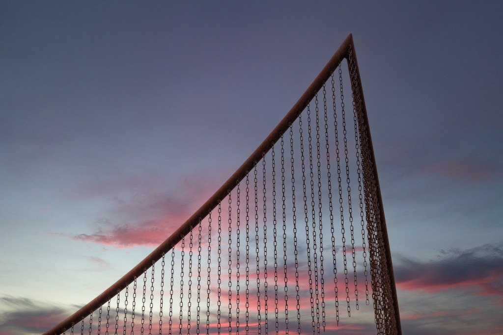 Tutta una forma, una struttura, per far dondolare delle catene, che non legassero più; e a ben vedere, di cosa è fatta, una catena, se non soprattutto d’aria? Cosa appare, nelle sue maglie – cosa si vede, se non la vastità del cielo?