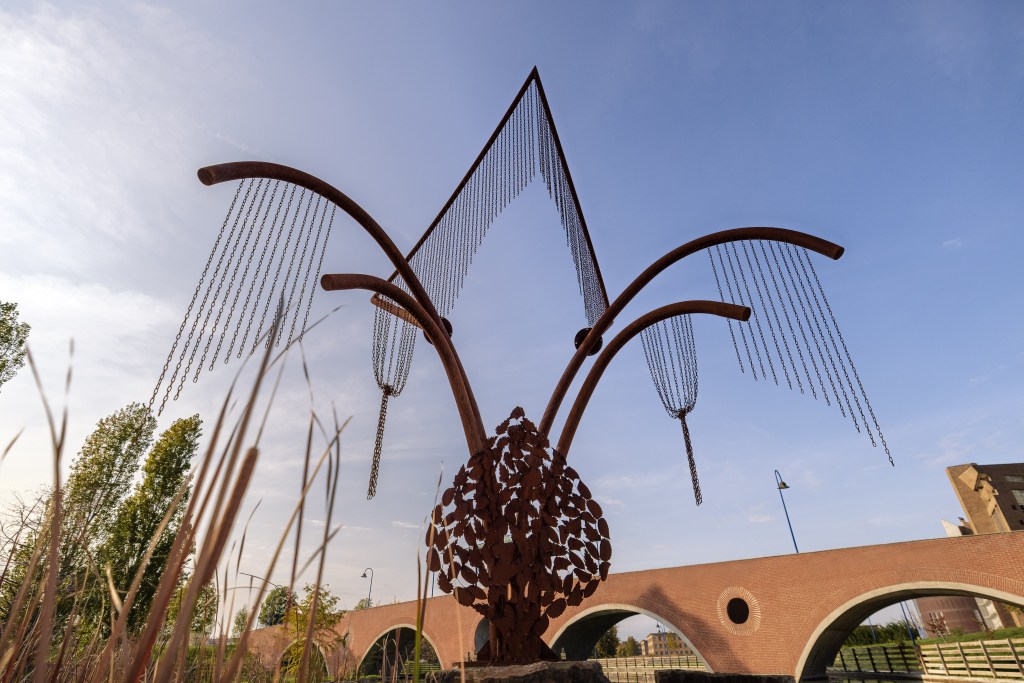 Un movimento di ascesa, che consenta, poi, un armonioso ricadere – un ritorno verso il basso, verso la terra, con una consapevolezza nuova; un movimento, di ferro bruno, come se la terra stessa, fosse salita verso il cielo.